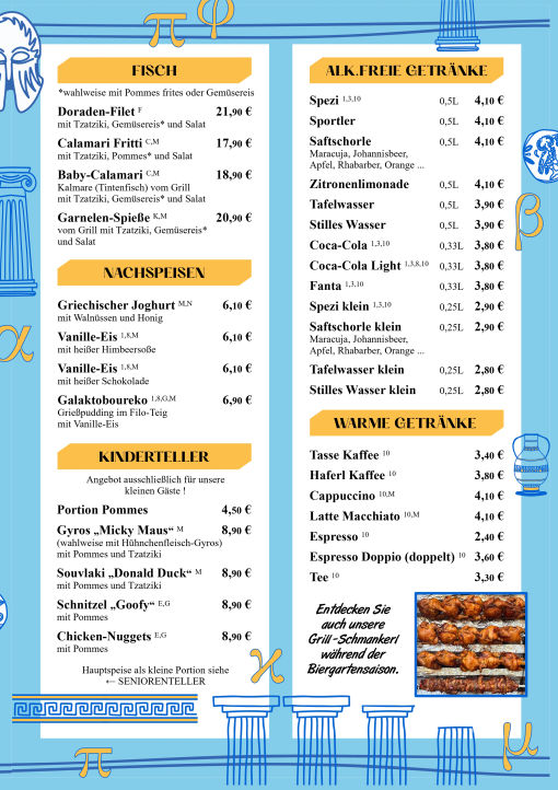 Bei Veranstaltungen kann es zu Abweichungen kommen. Sehen Sie hierzu unter Aktuelles die angepasst Speisekarte.