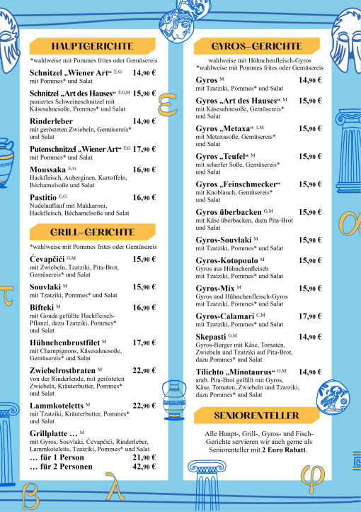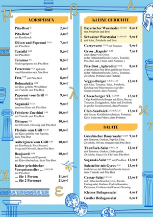 Bei Veranstaltungen kann es zu Abweichungen kommen. Sehen Sie hierzu unter Aktuelles die angepasst Speisekarte.